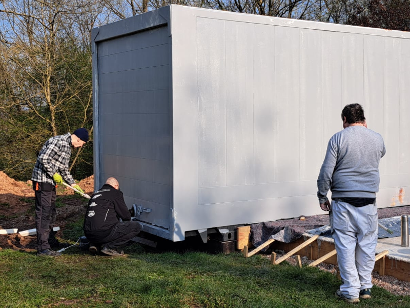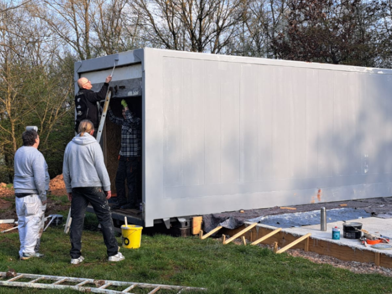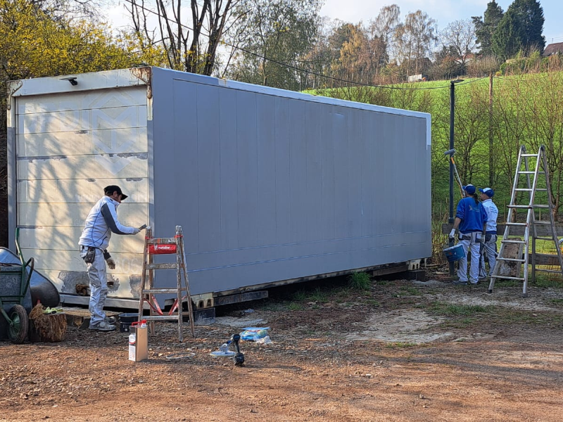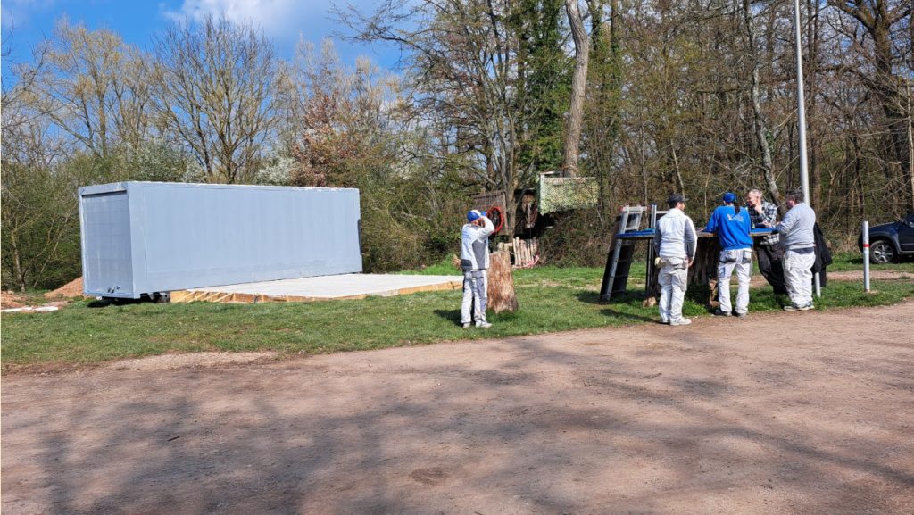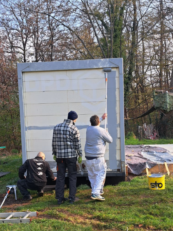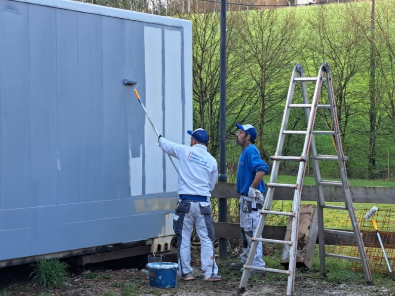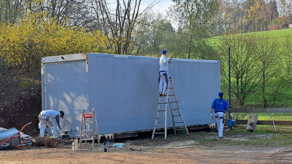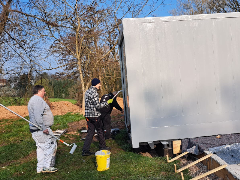 Alle Maler aus dem Verein waren an diesem Morgen vor Ort, um den Containern einen neuen Anstrich zu verpassen. Im Vorfeld wurde die alte Beschriftung schon entfernt, die Container abgeschliffen und der Rost unter Kontrolle gebracht.