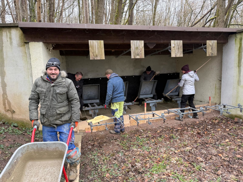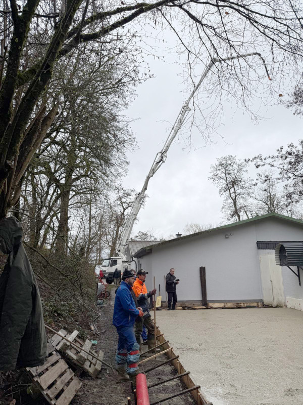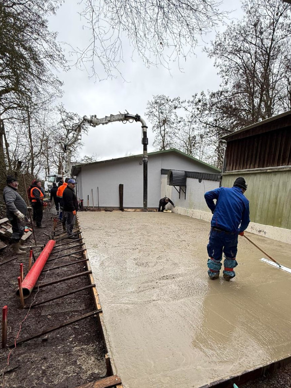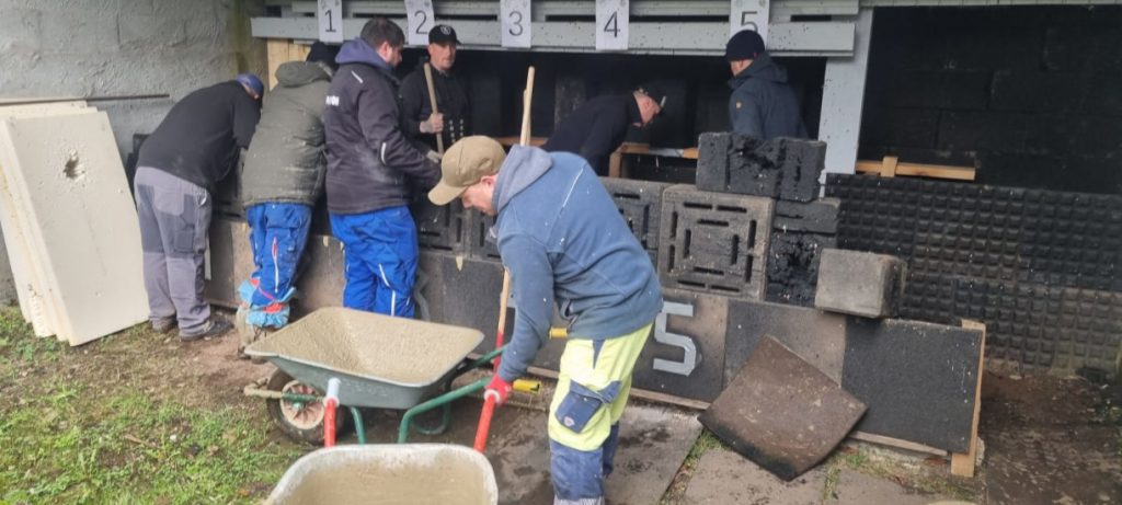 Die Fundamente für die Grillhütte und den VR-Raum wurden auf diese Weise fertig gestellt, die Betonböden in den Geschossfängen auf dem 25- und dem 50-Meter-Stand wurden heute ebenfalls fertig.